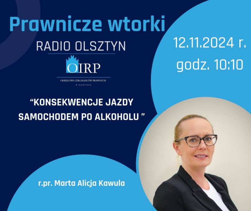 Serdecznie zapraszamy na kolejną audycję z cyklu PRAWNICZE WTORKI, która odbędzie się we wtorek 12 listopada 2024 r. o godz. 10:10.