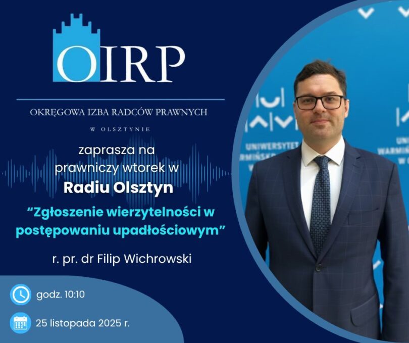 Serdecznie zapraszamy na audycję z cyklu “Prawnicze wtorki”, która odbędzie się we wtorek 25 listopada 2025 r. o godz. 10:10.