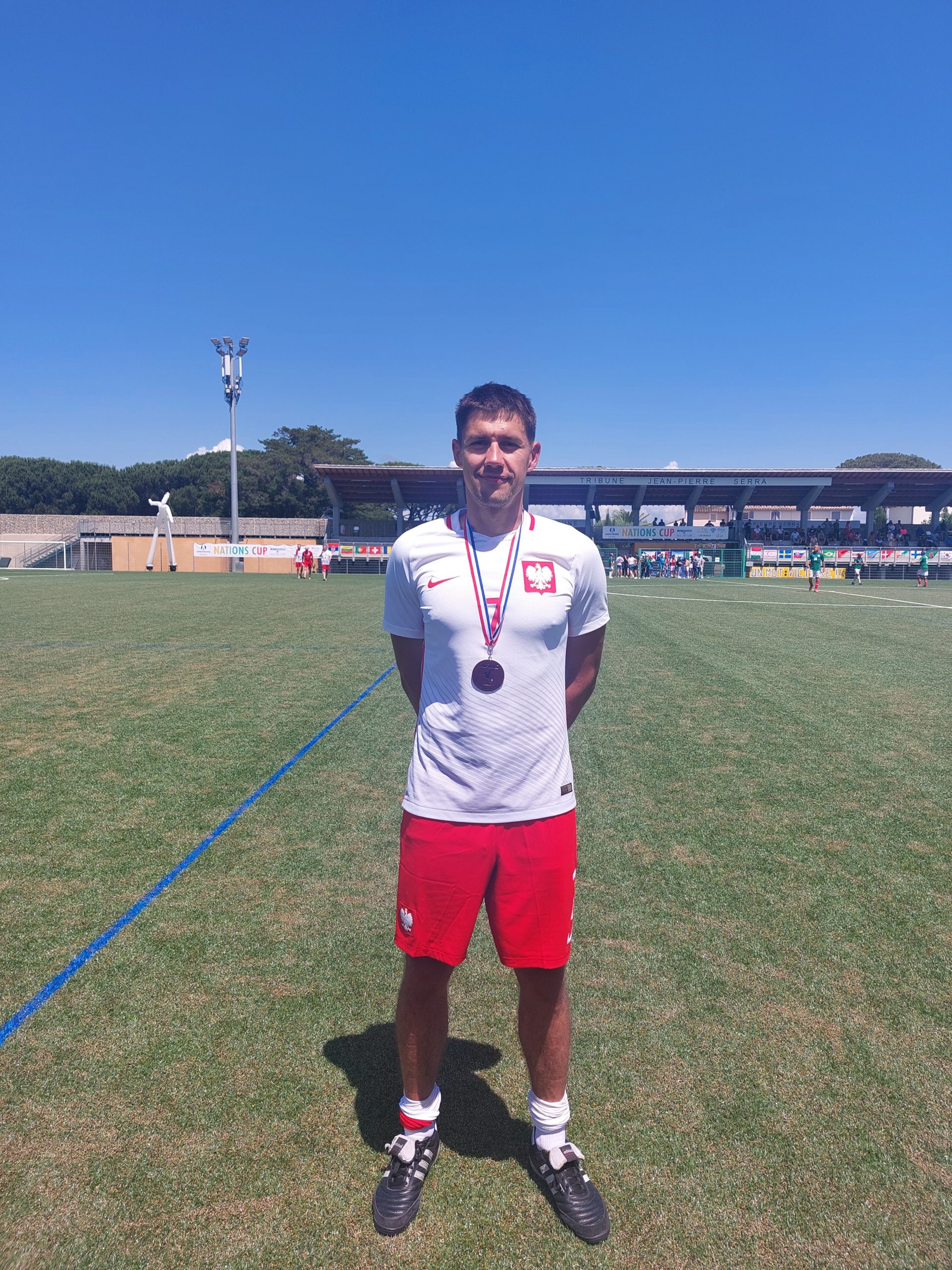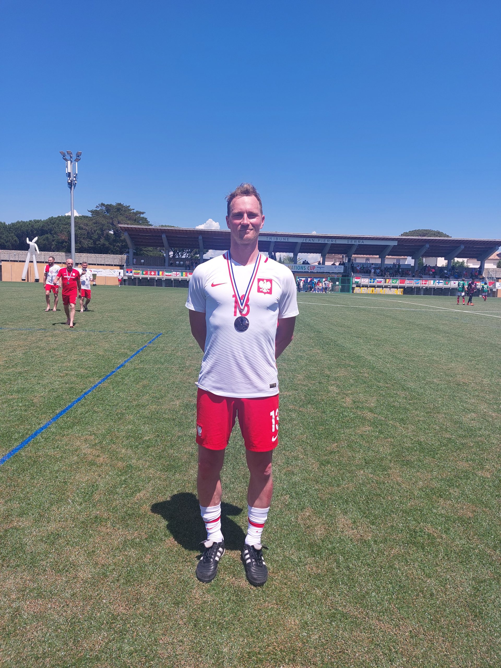 W dniu 10.06.2023r. zmierzyliśmy się z reprezentacją Izraela (zeszłoroczny Mistrz Europy). Był to szalenie trudny rywal z zawodnikami grającymi bardzo fizycznie, agresywnie, często z przekroczeniem obowiązujących zasad. Pomimo bardzo dużej przewagi naszych przeciwników przez 60 minut utrzymywał się remis 0-0. Zmęczenie turniejem mocno dawało się we znaki. Z kontuzjami grali obaj stoperzy (niezawodny Tomasz Kozak, który nie przegrał do finału żadnego pojedynku w powietrzu i Tomasz Tabisz, który wprowadzał spokój zarówno przy akcjach defensywnych, jak i ofensywnych i który obok Pawła Godlewskiego i Konrada Makara rozegrał na boisku wszystkie minuty turnieju). Pod koniec drugiej połowy w polu karnym drużyny Izraela, faulowany był Marek Wszołek, który w tym meczu wykonał tytaniczną pracę defensywnego pomocnika i skutecznie włączył się do akcji ofensywnej, a niezawodny Konrad Makar zamienił jedenastkę na bramkę. Po kilku minutach rozpaczliwych ataków przeciwników, sędzia zakończył mecz i byliśmy w FINALE MISTRZOSTW ŚWIATA!!!!!!. Napisać o eksplozja radości to tyle co prawie nic nie napisać o naszym samopoczuciu. Żadna polska drużyna prawników, nigdy nie grała w finale żadnej imprezy międzynarodowej tej rangi: ani Mistrzostwach Europy (Eurolawyers), ani Mistrzostwach Świata (Munduavocat).