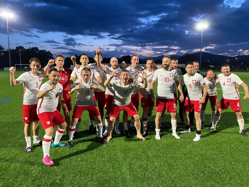 Po losowaniu przeprowadzonym przez organizatorów, kolejnego dnia (9.06.2023r.) zmierzyliśmy się z reprezentacją Serbii. Do meczu przystąpiliśmy po dokonaniu wymuszonej zmiany w składzie, wywołanej kontuzją doskonale do tej pory spisującego się Konrada Symonajcia. Pomimo kontroli przebiegu spotkania i pojawiających się szans, kilkukrotne rajdy Marka Czarnigowskiego (OIRP Olsztyn) grającego na prawej pomocy, nie udało się nam zdobyć bramki, a że reprezentacyjna obrona kierowana przez duet Tomaszów – Tomasza Kozaka (OIRP Olsztyn) i Tomasza Tabisza (ORA Kraków), sprawowała się doskonale, mecz zakończył się remisem i drużyna która awansuje do półfinału miała zostać wyłoniona w konkursie rzutów karnych. Konkurs zakończyliśmy zwycięsko – celnie strzelali Konrad Makar, Adam Pulchny (OIRP Wrocław), Marek Wszołek (OIRP Kraków), Maciej Bałaziński i Paweł Mirski (ORA Lublin), a ostatni rzut karny Serbów został obroniony przez Pawła Godlewskiego (OIRP Olsztyn), który po kilku sekundach „utonął” w uściskach kolegów z drużyny. Radość drużyny nie do opisania – awans do półfinału to był niebywały sukces, a okoliczności i emocje temu towarzyszące dodały nam sił i wiary, że uda nam się osiągnąć wynik o jakim nie marzyliśmy.
