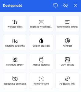 W prawym dolnym rogu strony internetowej znajduje się przycisk otwierający panel opcji.