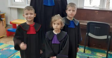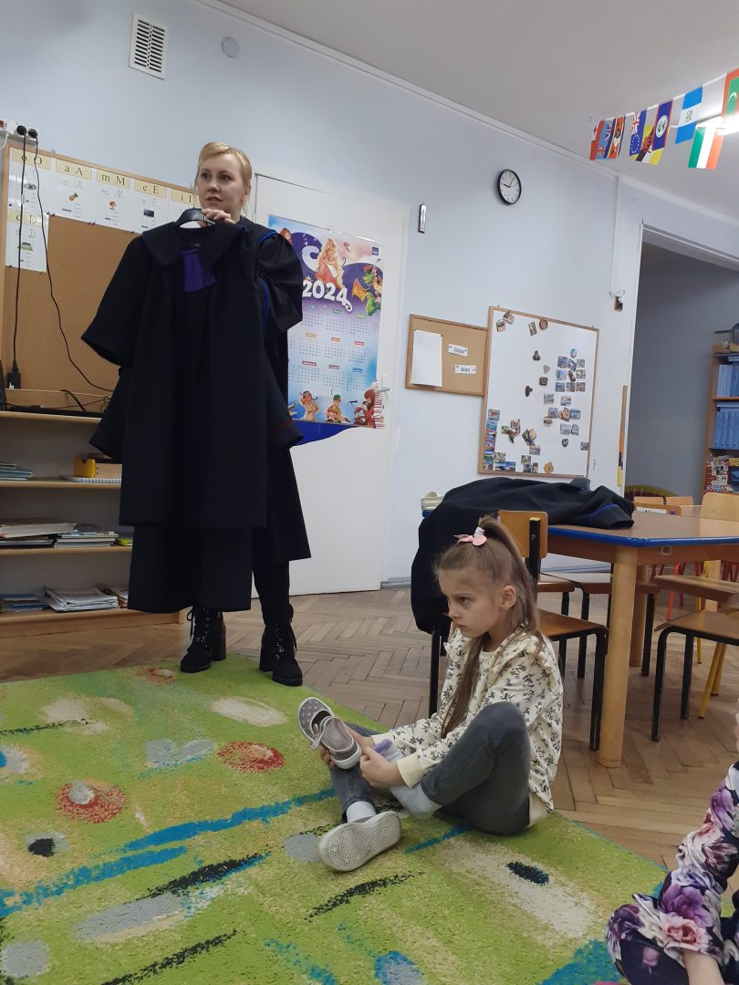 Mini togi cieszyły się szczególnym zainteresowaniem wśród przedszkolaków. Dzieci bardzo chętnie wcielały się w rolę poszczególnych zawodów prawniczych przymierzając je i pozując do zdjęć.