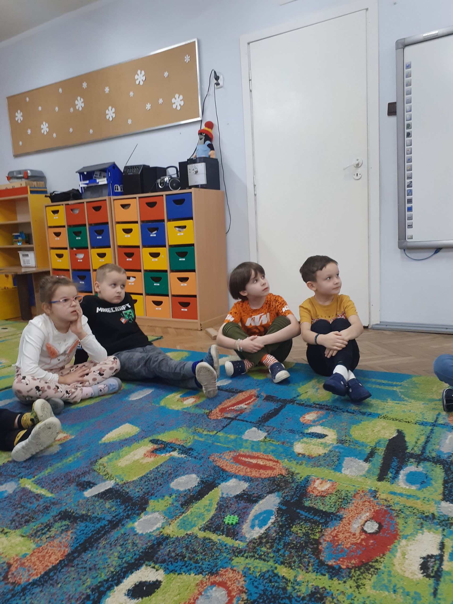 Dzieci były bardzo zainteresowane tematem i aktywnie uczestniczyły w dyskusji. Podawały przykłady sytuacji, w których powinny zastosować swoje prawa i obowiązki (również w przedszkolu). W nagrodę za dobre odpowiedzi otrzymywały naklejki dotyczące poszczególnych praw dziecka i symboli w prawie.