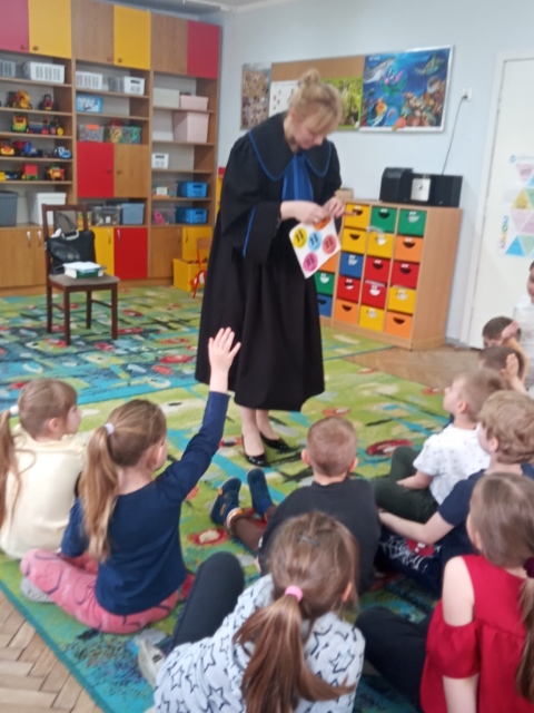 W trakcie spotkań z radcami prawnymi przedszkolaki dowiedziały się na czym polega zawód radcy prawnego i jakie są najważniejsze prawa i obowiązki dziecka. Dzieci były bardzo zainteresowane tematem i aktywnie uczestniczyły w dyskusji co widać na załączonych zdjęciach.