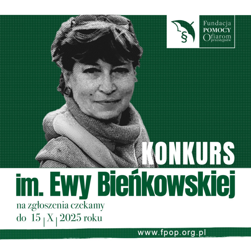 Fundacja Pomocy Ofiarom Przestępstw do 15 października 2025 roku przyjmuje zgłoszenia w III edycji Konkursu im. Ewy Bieńkowskiej, którego przedmiotem jest wyłonienie najlepszej publikacji z zakresu ochrony praw osób pokrzywdzonych przestępstwem, a także nagrodzenie praktycznych działań związanych z pomocą ofiarom przestępstw.