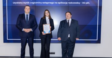Najlepszy wynik spośród osób przystępujących do egzaminu w Olsztynie uzyskała Gabriela Kisielewska – 143 punkty – była to 4 nota w całym kraju! Serdecznie gratulujemy! W uroczystości z ramienia Prezydium Okręgowej Izby Radców Prawnych w Olsztynie wziął udział Wicedziekan Mirosław Tetkowski, który również objął patronatem naszą najlepszą Aplikantkę.