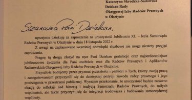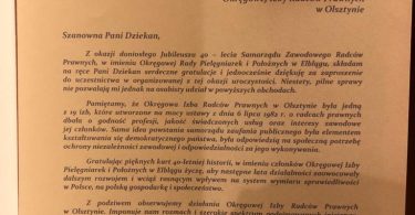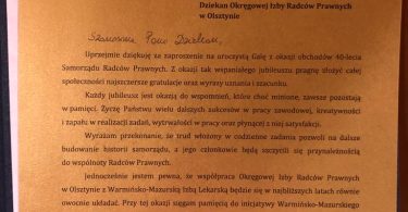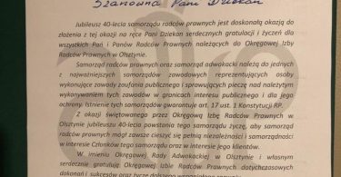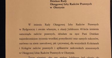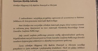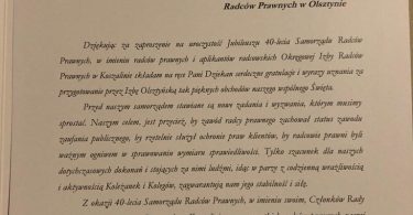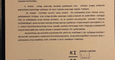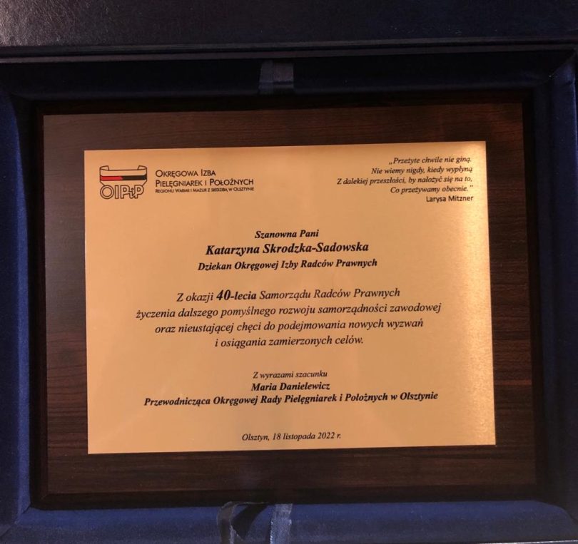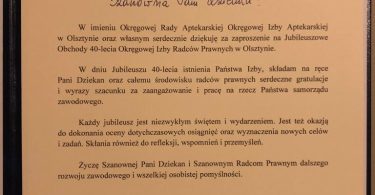 Podczas uroczystej Gali w Rynie radcom prawnym działającym w organach samorządowych zostały wręczone złote i srebrne odznaki honorowe “Zasłużony dla Samorządu Radców Prawnych” oraz medale pamiątkowe z okazji 40-lecia samorządu zawodowego radców prawnych.