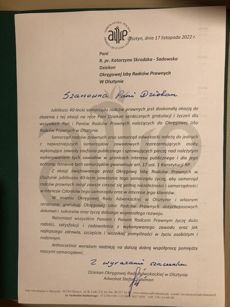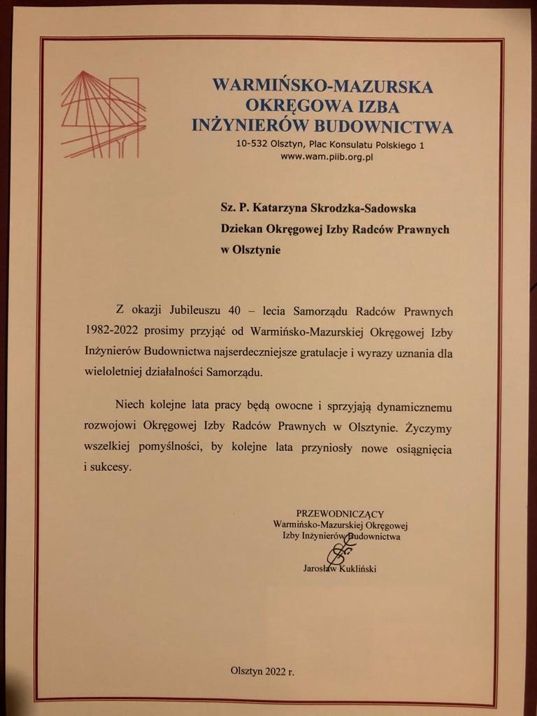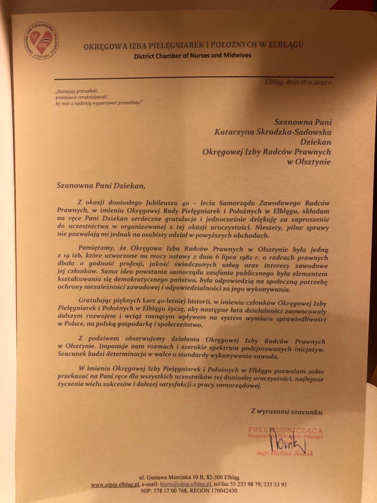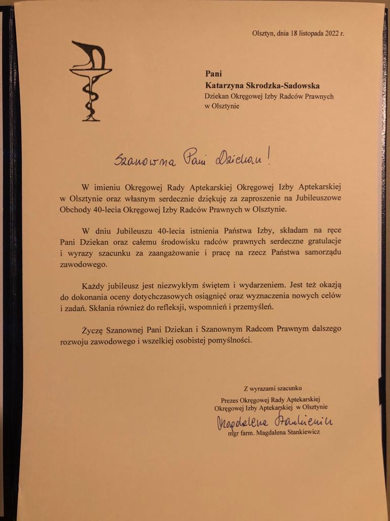 Poniżej prezentujemy galerię zawierającą życzenia i upominki jakie Izba otrzymała od zaproszonych gości: