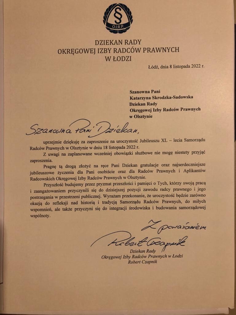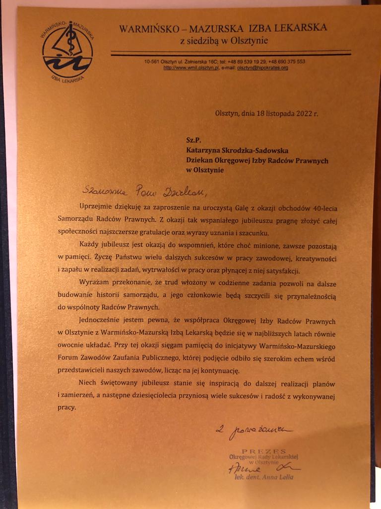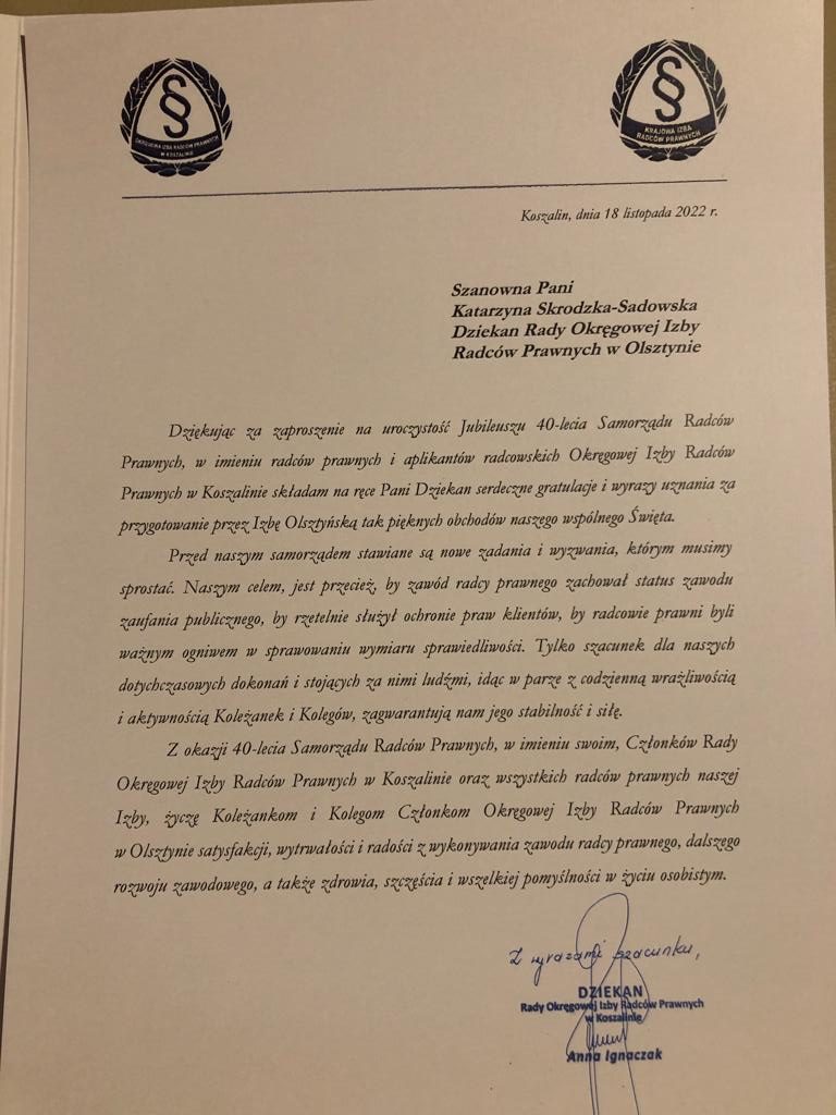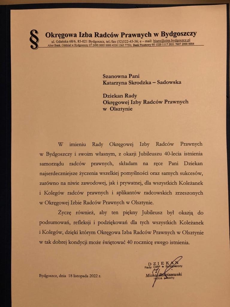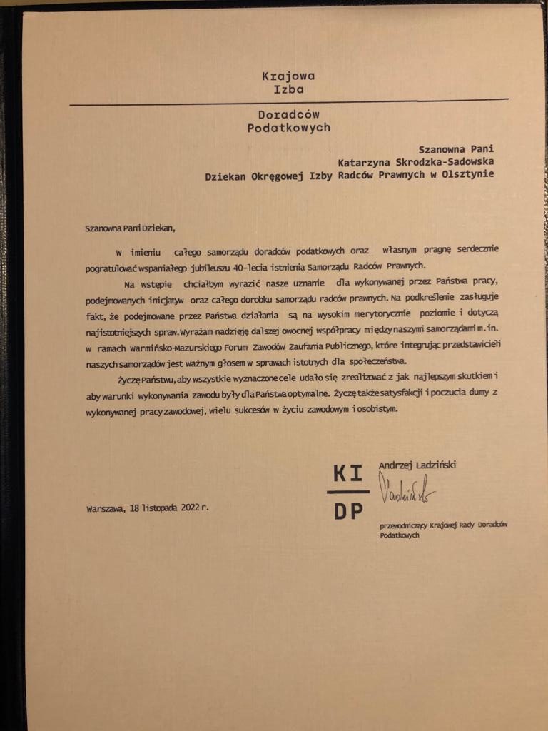 Poniżej prezentujemy galerię zawierającą życzenia i upominki jakie Izba otrzymała od zaproszonych gości: