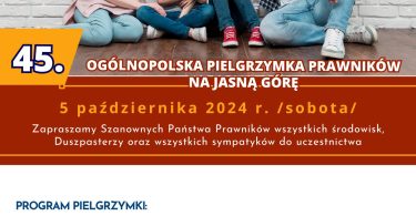 Szczęść Boże Szanowni Państwo, W imieniu Bpa Janusza Stepnowskiego oraz własnym serdecznie zapraszam do udziału w 45. Ogólnopolskiej Pielgrzymce Prawników na Jasną Górę...