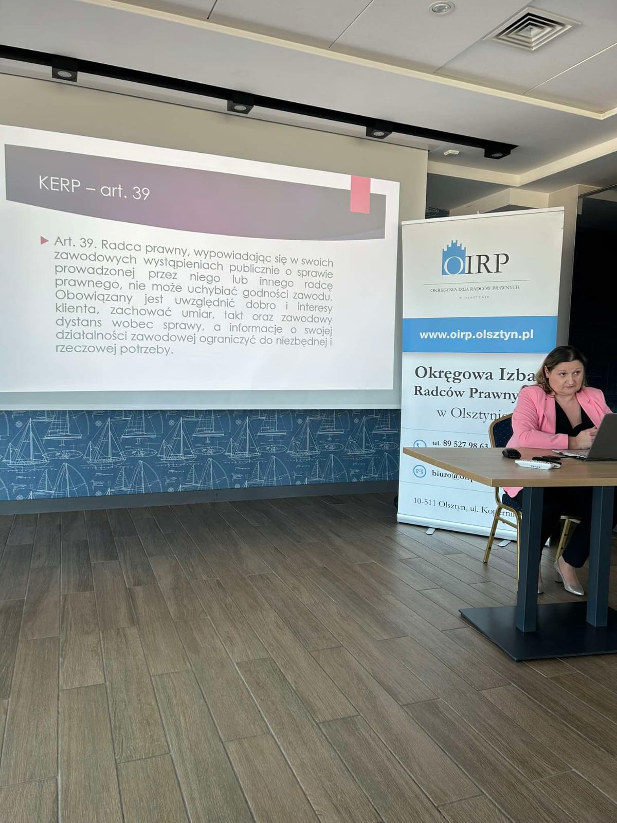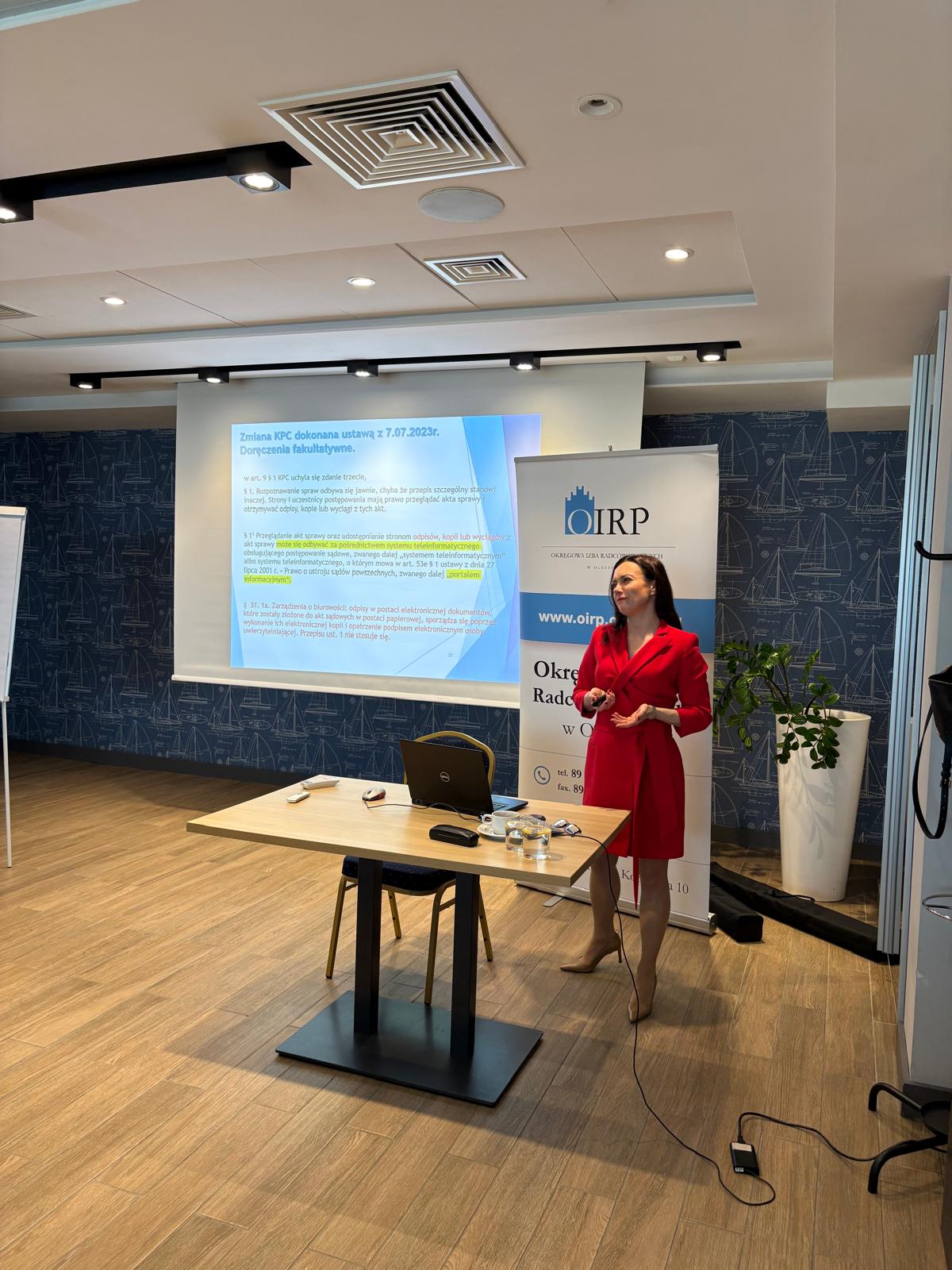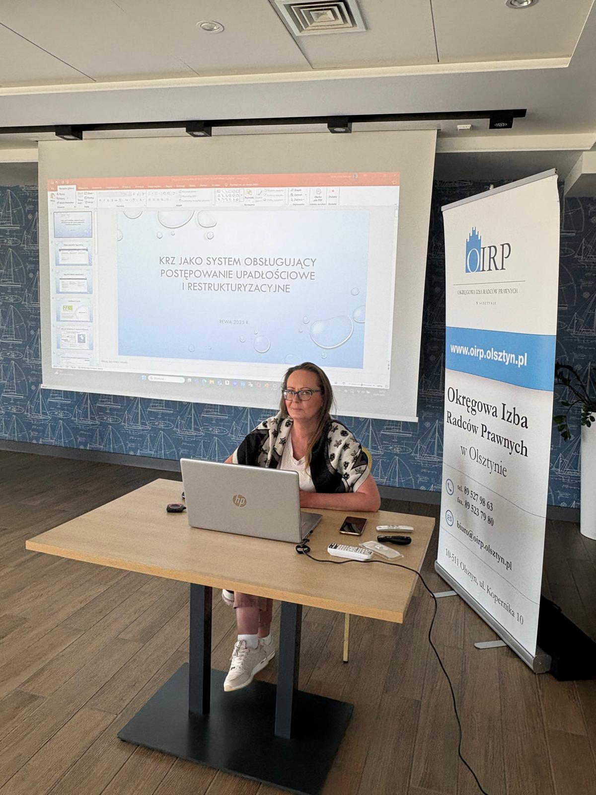 W piątkowe przedpołudnie uczestnicy szkolenia wysłuchali wykładu, a także wzięli udział w żywej dyskusji dotyczącej praktycznych problemów wykonywania zawodu radcy prawnego. Zajęcia te poprowadził r. pr. Michał Korwek. Natomiast popołudniowy wykład dotyczący zagadnień związanych z wolnością wypowiedzi radcy prawnego przeprowadziła r. pr. Kamila Warcaba. Kolejny dzień szkoleniowy w całości spędziliśmy z Panią Sędzią Moniką Białą, która przybliżyła nam zagadnienia związane z prowadzeniem sprawy cywilnej – od złożenia pozwu do skutecznej egzekucji – nowy model postępowania cywilnego po ostatnich zmianach procedury cywilnej. Trzeciego dnia dobyły się warsztatowe zajęcia z zakresu funkcjonowania Krajowego Rejestru Zadłużonych, jako systemu obsługującego postępowania upadłościowe i restrukturyzacyjne, które prowadziła r. pr. Marta Alicja Kawula.