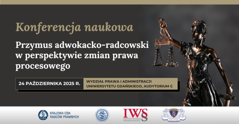 Krajowa Izba Radców Prawnych, Instytut Wymiaru Sprawiedliwości, Wydział Prawa i Administracji Uniwersytetu Gdańskiego oraz Okręgowa Izba Radców Prawnych w Gdańsku zapraszają do udziału w konferencji poświęconej przymusowi adwokacko-radcowskiemu i potrzebie jego zmian w świetle aktualnych wyzwań prawa procesowego.