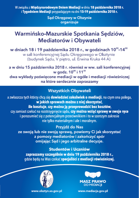 Ośrodek Mediacji Gospodarczych • Strona główna Międzynarodowy Tydzień Mediacji 15-19.października 2018 r. 21 września 2018 FacebookXLinkedIn