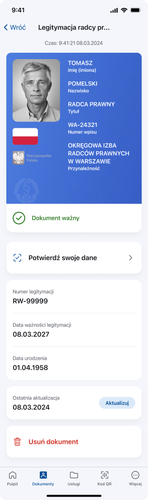 Informujemy, że mLegitymacja dla radców prawnych i aplikantów radcowskich jest już dostępna w usłudze mObywatel (najnowsza wersja 4.28.0). Zachęcamy do korzystania z mLegitymacji, dzięki której potwierdzisz swoje uprawnienia do wykonywania zawodu.