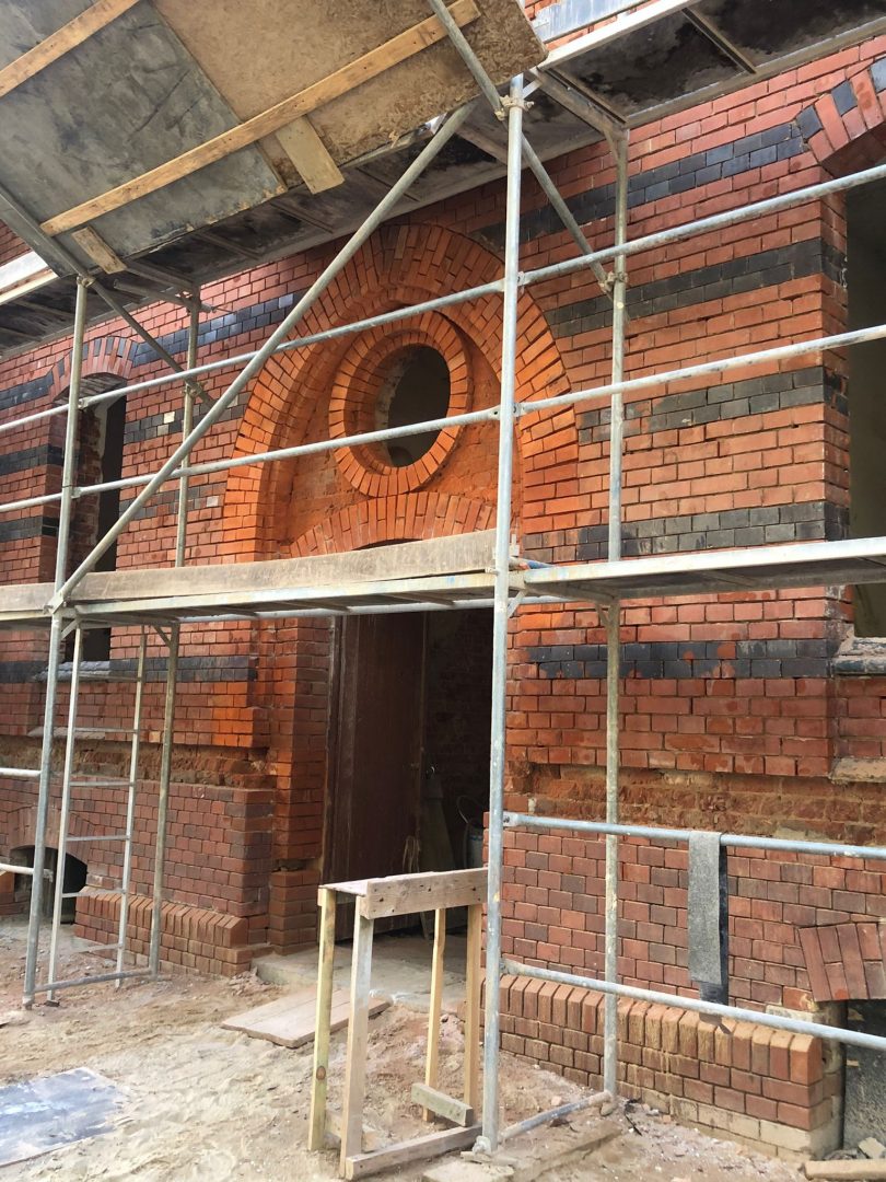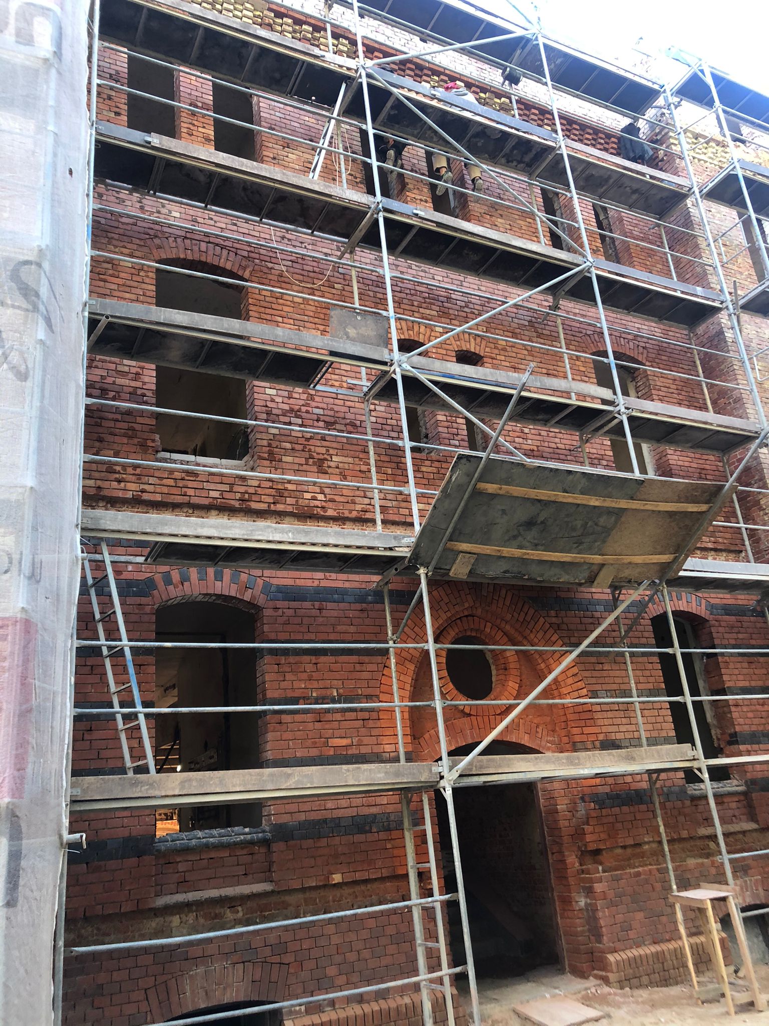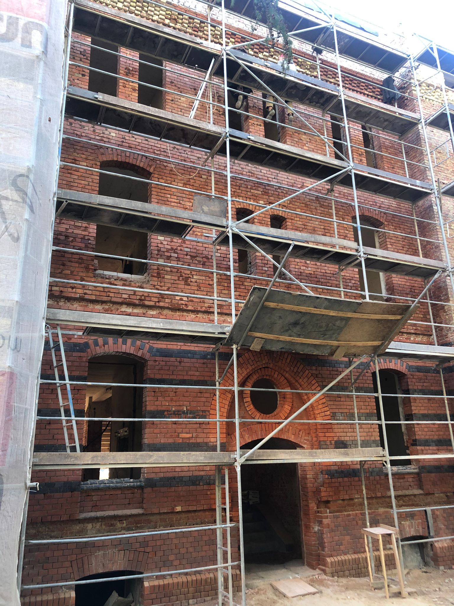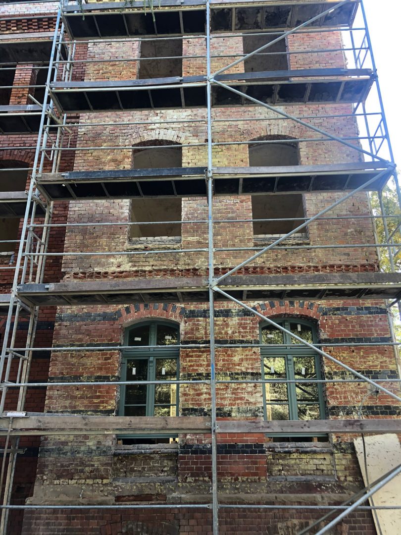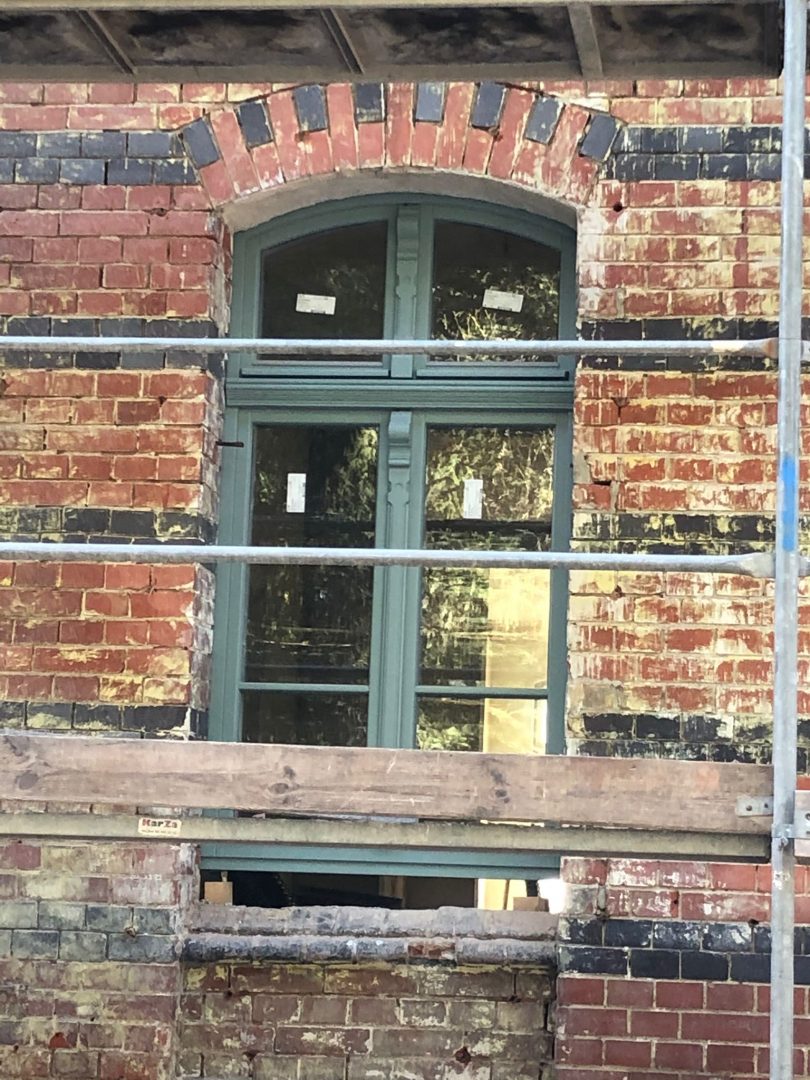 Na głównej ścianie nad wejściem do budynku oraz od strony Monte Cassino prowadzone są prace oczyszczania czerwonej cegły elewacyjnej i roboty elewacyjne w zakresie ryzalitów. Część ta nie będzie zasłonięta dociepleniem, a docieplenie będzie wykonane wewnątrz budynku. Na tych ścianach również usunięte zostały stare okna i sukcesywnie montowane są nowe.