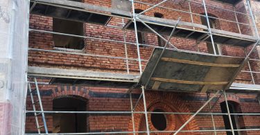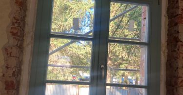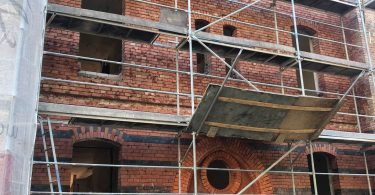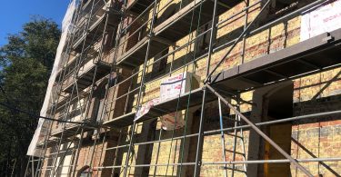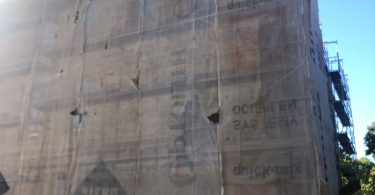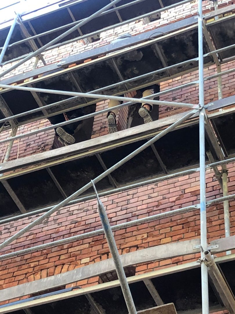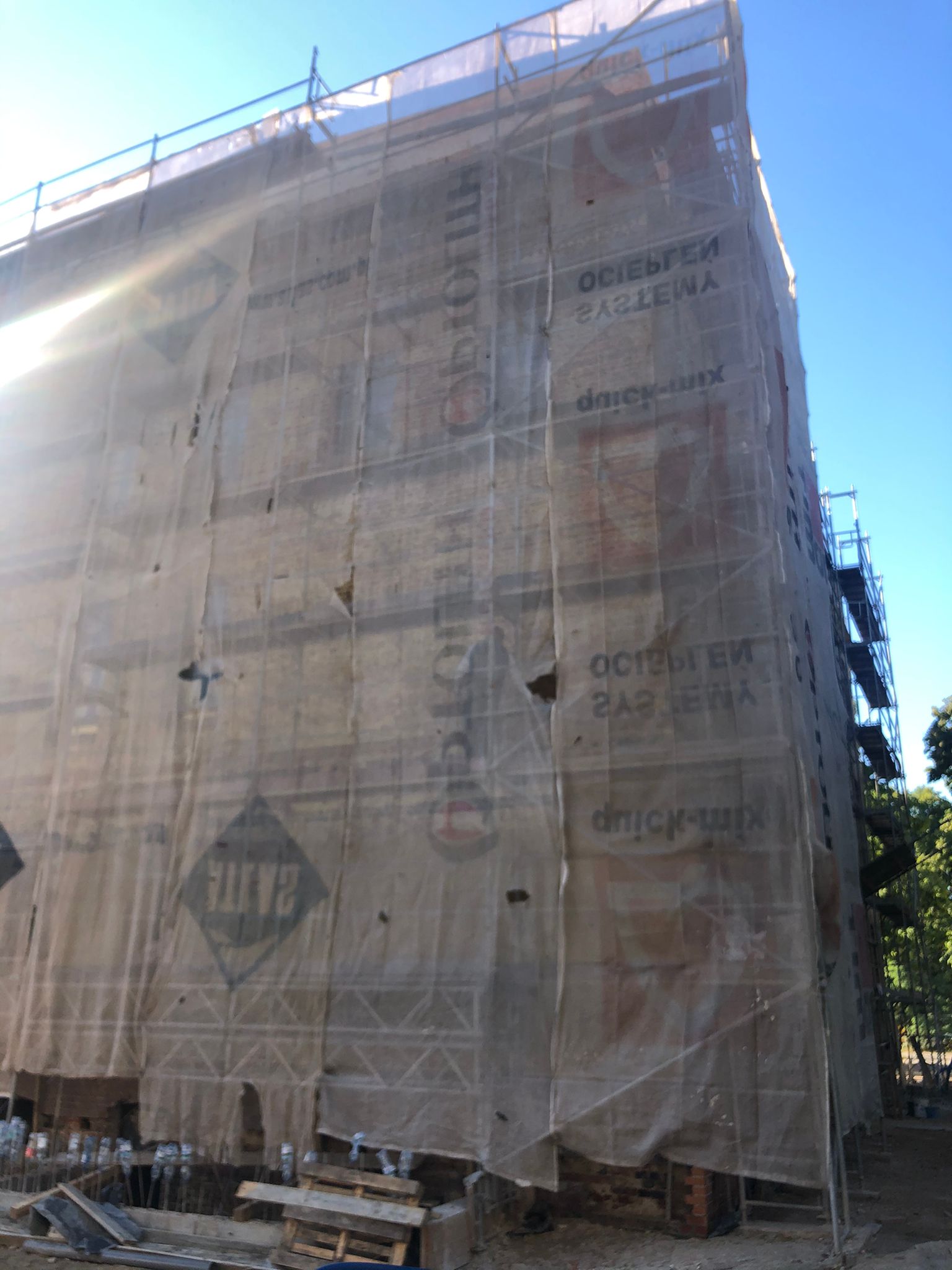 Wokół budynku wzniesione zostały rusztowania – z trzech stron i zdjęte zostało stare docieplenie wraz z tynkiem które wynosiło… ok. 4-5 cm. Od strony sądu wojskowego zamontowana została na wszystkich piętrach stolarka okienna w kolorze szarym – zgodnie z projektem i zaleceniami konserwatora zabytków. Rozpoczęto prace związane z dociepleniem budynku. Trwają też prace wykończeniowe na dachu.