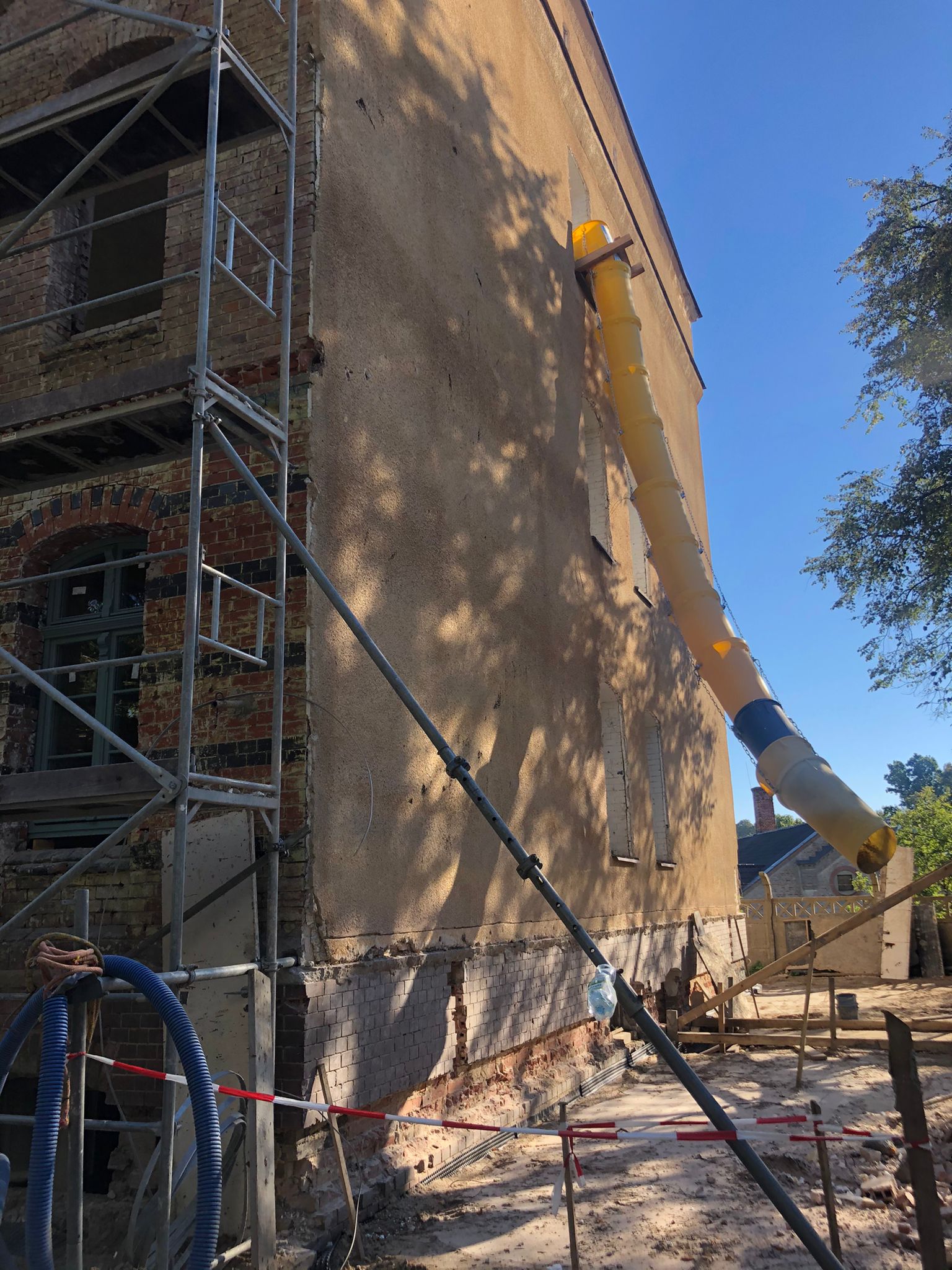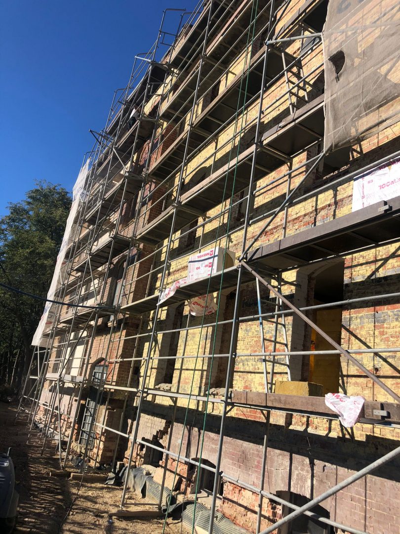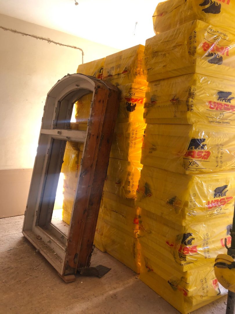 W chwili obecnej wykonawca skupia się na tym, aby przed okresem jesiennym wstawić wszystkie okna oraz docieplić budynek w całości, tak aby w okresie późnej jesieni i zimą prowadzić prace wewnątrz budynku.