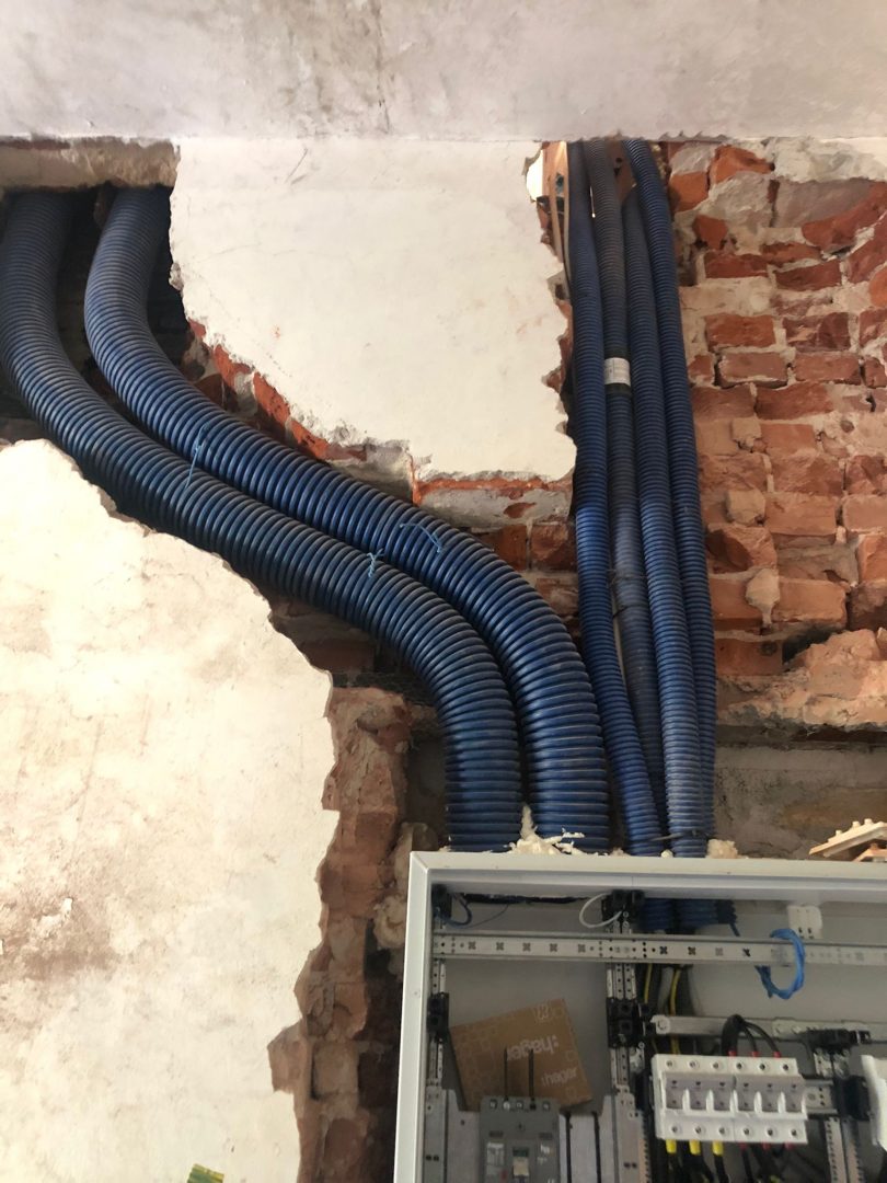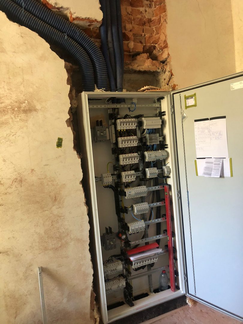 W środku powstały ścianki działowe w pomieszczeniach biurowych, a także zamontowano szafy do instalacji elektrycznej. Niebawem rozpoczną się prace związane z ułożeniem instalacji elektrycznej.