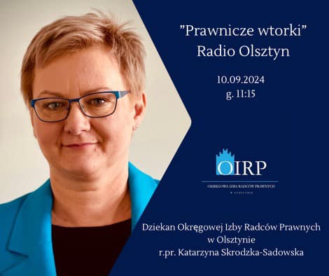 Gościem audycji będzie Dziekan OIRP Olsztyn r.pr. Katarzyna Skrodzka-Sadowska.