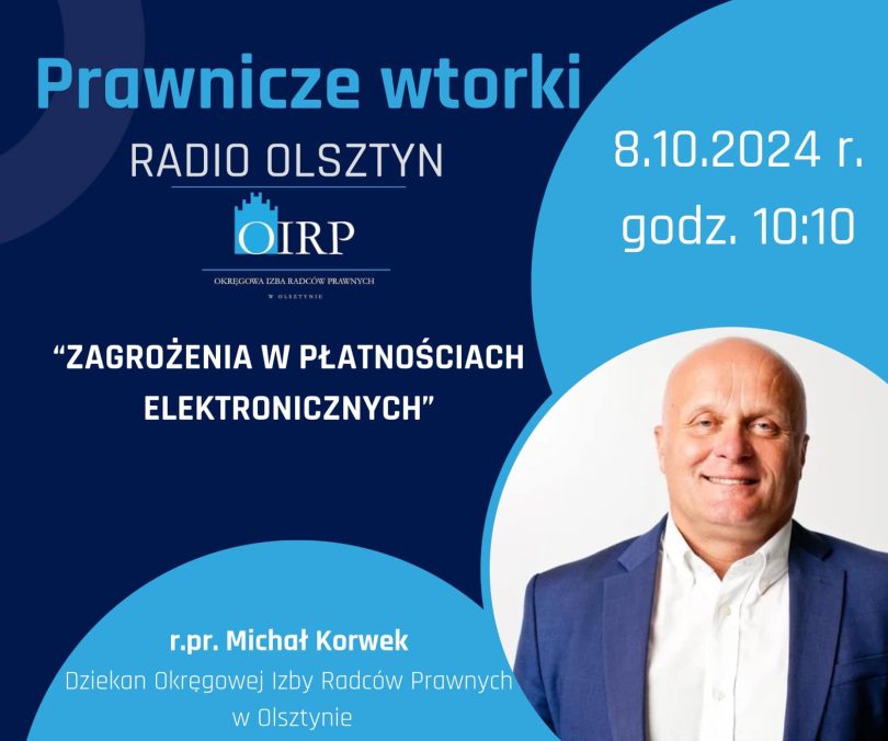 Gościem najbliższej, inauguracyjnej audycji będzie r.pr. Michał Korwek Dziekan Okręgowej Izby Radców Prawnych w Olsztynie.