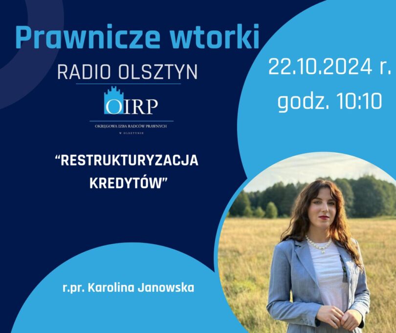 Serdecznie zapraszamy na kolejną audycję z cyklu PRAWNICZE WTORKI, która odbędzie się we wtorek 22 października 2024 r. o godz. 10:10.