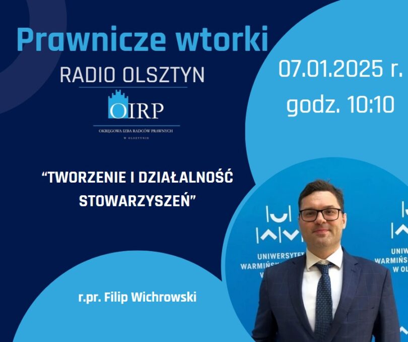 Serdecznie zapraszamy na kolejną audycję z cyklu PRAWNICZE WTORKI, która odbędzie się we wtorek 7 stycznia 2025 r. o godz. 10:10.
