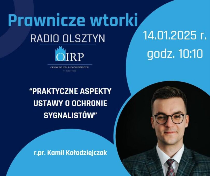 Serdecznie zapraszamy na kolejną audycję z cyklu PRAWNICZE WTORKI, która odbędzie się we wtorek 14 stycznia 2025 r. o godz. 10:10.