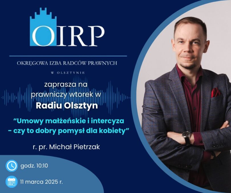 Serdecznie zapraszamy na audycję z cyklu PRAWNICZE WTORKI, która odbędzie się we wtorek 11 marca 2025 r. o godz. 10:10.