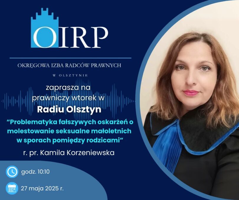 Serdecznie zapraszamy na audycję z cyklu „Prawnicze wtorki”, która odbędzie się we wtorek 27 maja 2025 r. o godz. 10:10.