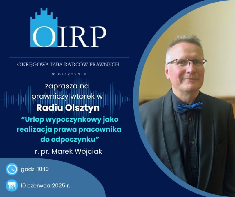 Serdecznie zapraszamy na audycję z cyklu „Prawnicze wtorki”, która odbędzie się we wtorek 10 czerwca 2025 r. o godz. 10:10.