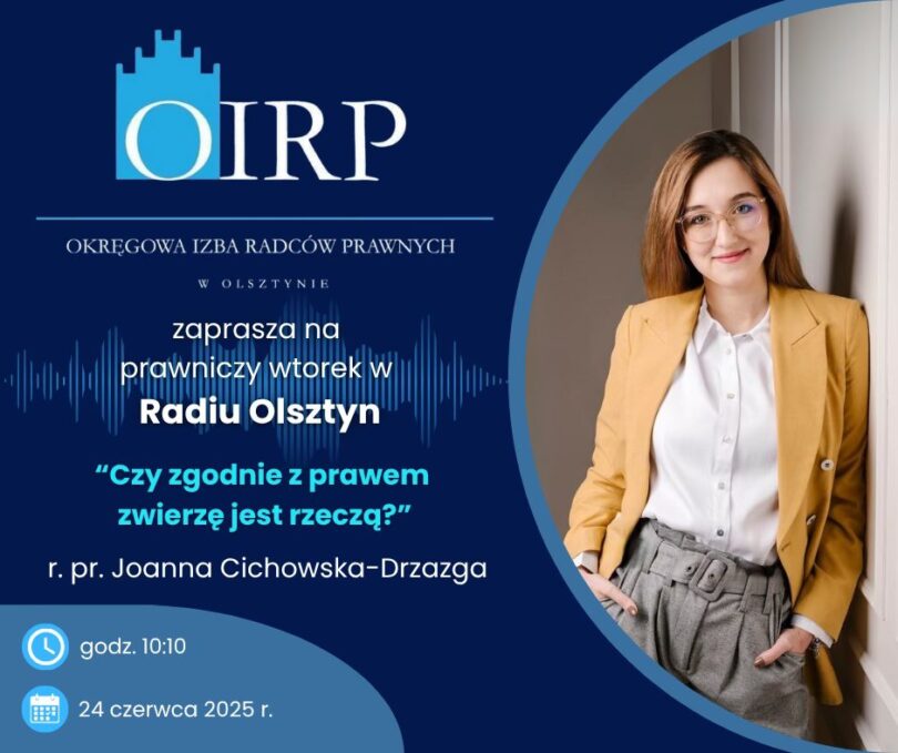 Serdecznie zapraszamy na audycję z cyklu „Prawnicze wtorki”, która odbędzie się we wtorek  24 czerwca 2025 r. o godz. 10:10.