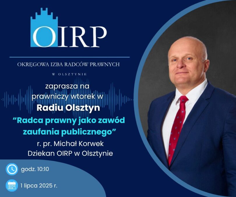 Gościem audycji będzie Dziekan OIRP w Olsztynie, r. pr. Michał Korwek
