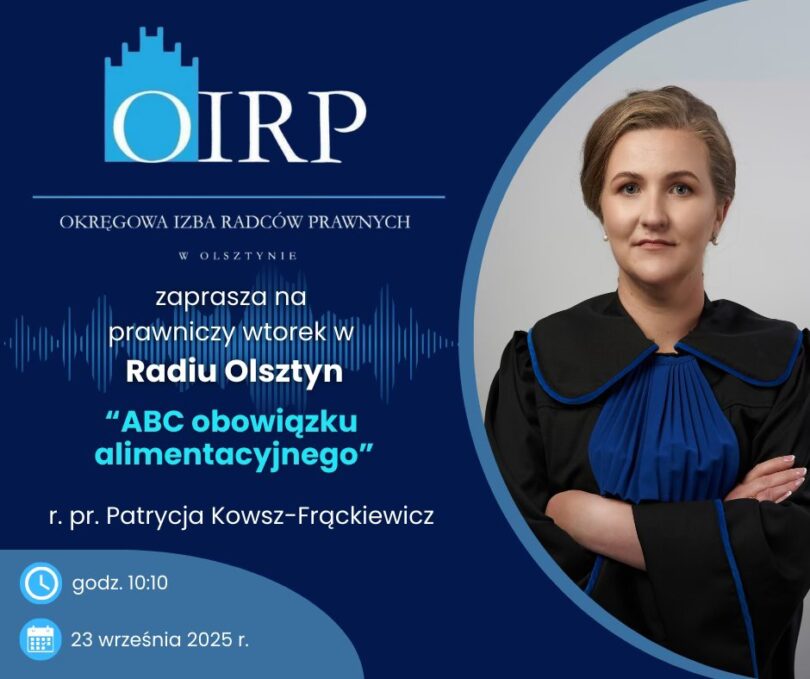 Serdecznie zapraszamy na audycję z cyklu „Prawnicze wtorki”, która odbędzie się we wtorek  23 września 2025 r. o godz. 10:10.