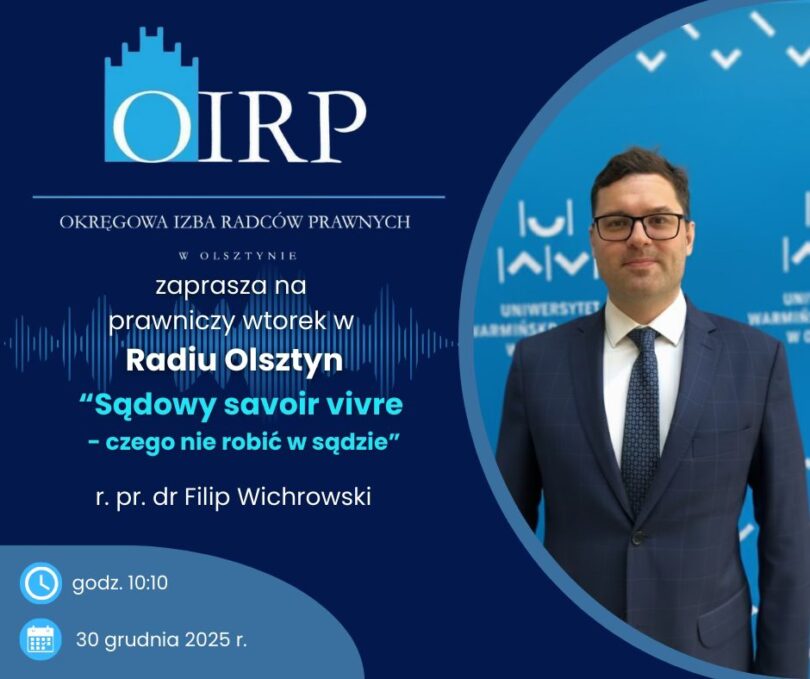 Serdecznie zapraszamy na audycję z cyklu „Prawnicze wtorki”, która odbędzie się we wtorek 30 grudnia 2025 r. o godz. 10:10.