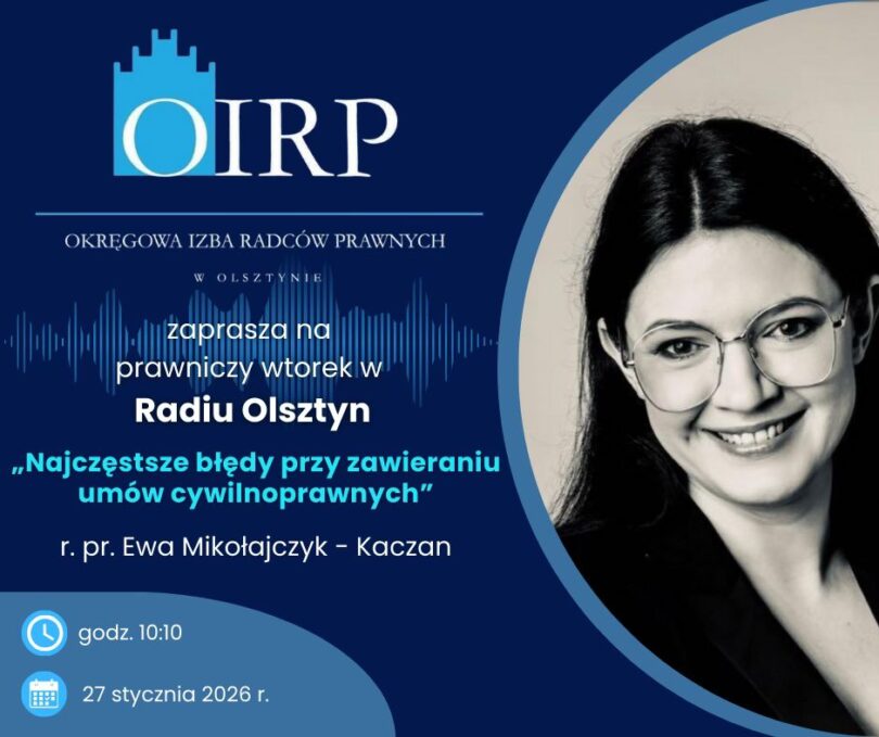 Serdecznie zapraszamy na audycję z cyklu „Prawnicze wtorki”, która odbędzie się we wtorek 27 stycznia 2026 r. o godz. 10:10.