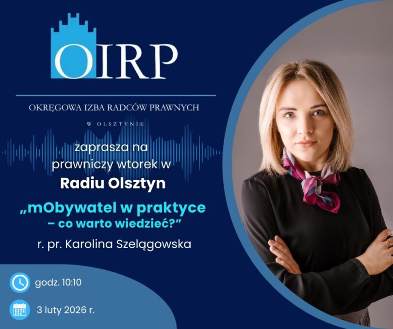 Serdecznie zapraszamy na audycję z cyklu „Prawnicze wtorki”, która odbędzie się we wtorek 3 lutego 2026 r. o godz. 10:10.