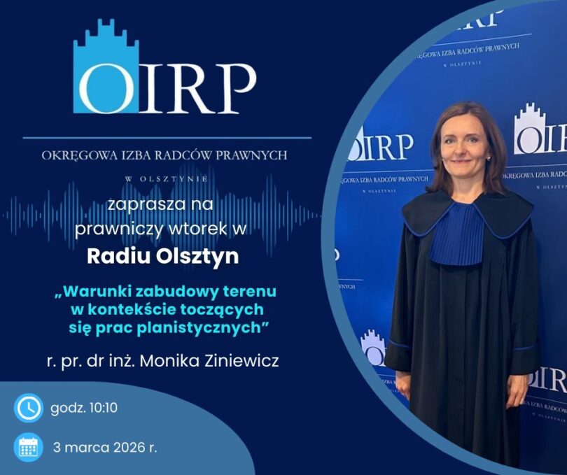 Serdecznie zapraszamy na audycję z cyklu „Prawnicze wtorki”, która odbędzie się we wtorek 3 marca 2026 r. o godz. 10:10.