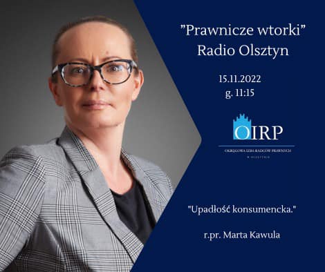 Serdecznie zapraszamy na kolejne wydanie „prawniczych wtorków”, które odbędzie się dziś o godzinie 11:15.