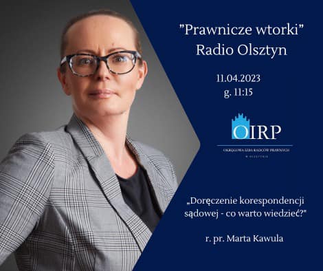 Serdecznie zapraszamy na kolejne wydanie „prawniczych wtorków”, które odbędzie się dziś o godzinie 11:15.