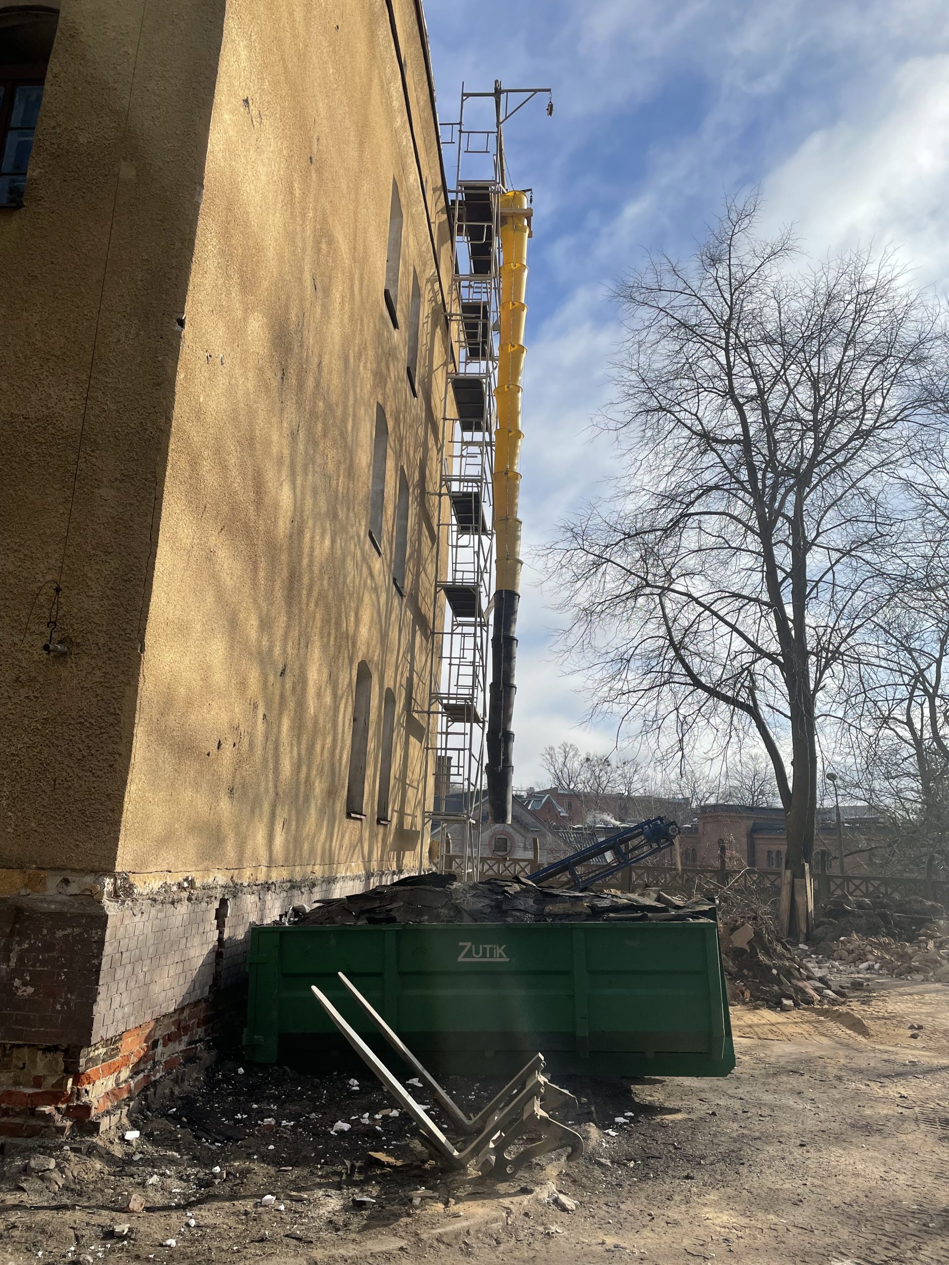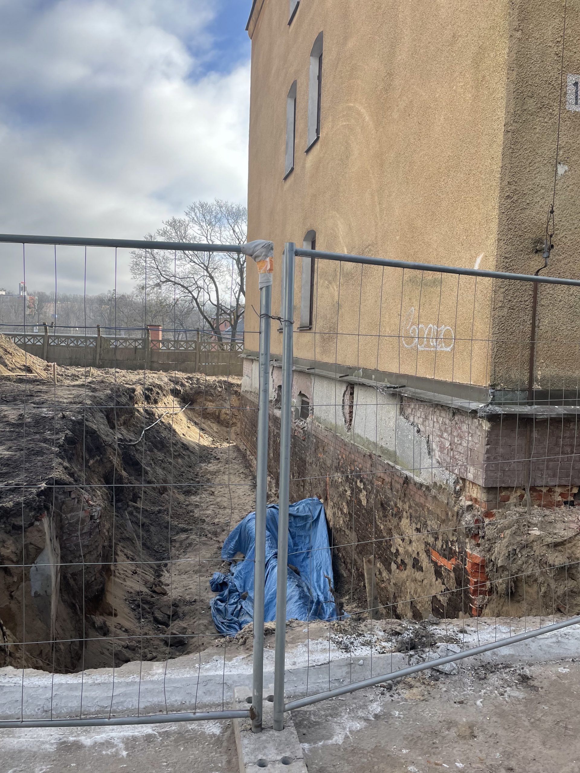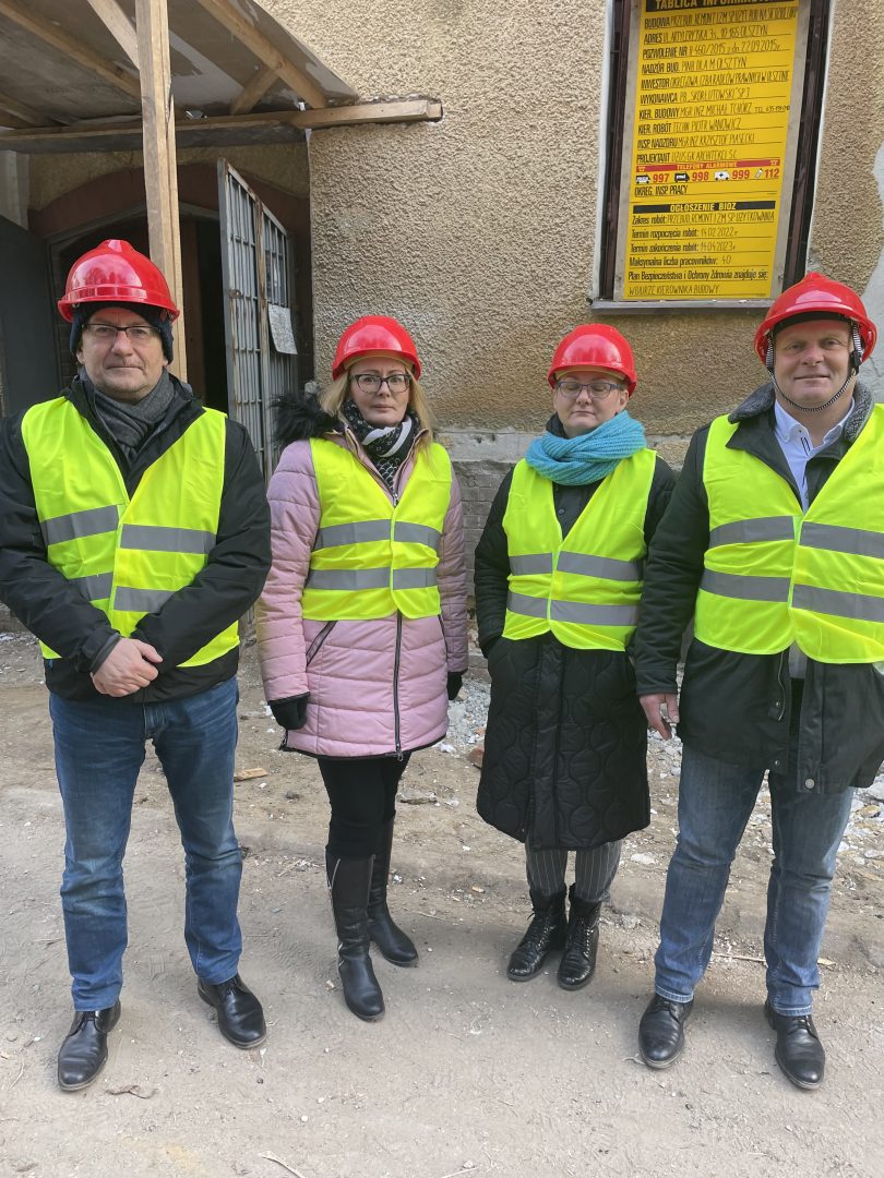 W dniu 7 marca 2022 roku miało miejsce pierwsze spotkanie Rady Budowy budynku, w czasie spotkania byliśmy z wizytą na placu budowy, gdzie realizowane są roboty rozbiórkowe w zakresie piwnic i pokrycia dachu, wykonano odkopanie budynku od strony północnej i wschodniej do poziomu ław fundamentowych.