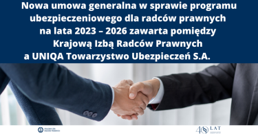 Informujemy, że w dniu 21.12.2022 roku pomiędzy Krajową Izbą Radców Prawnych a UNIQA TU S.A. przy udziale brokera ubezpieczeniowego Willis Towers Watson Sp. z o.o. została zawarta nowa Umowa...
