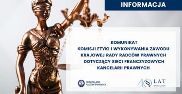 Komunikat Komisji Etyki i Wykonywania Zawodu Krajowej Rady Radców Prawnych dotyczący sieci franczyzowych kancelarii prawnych