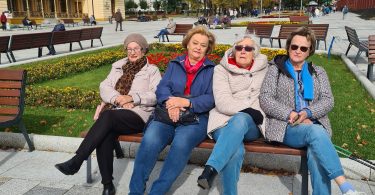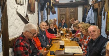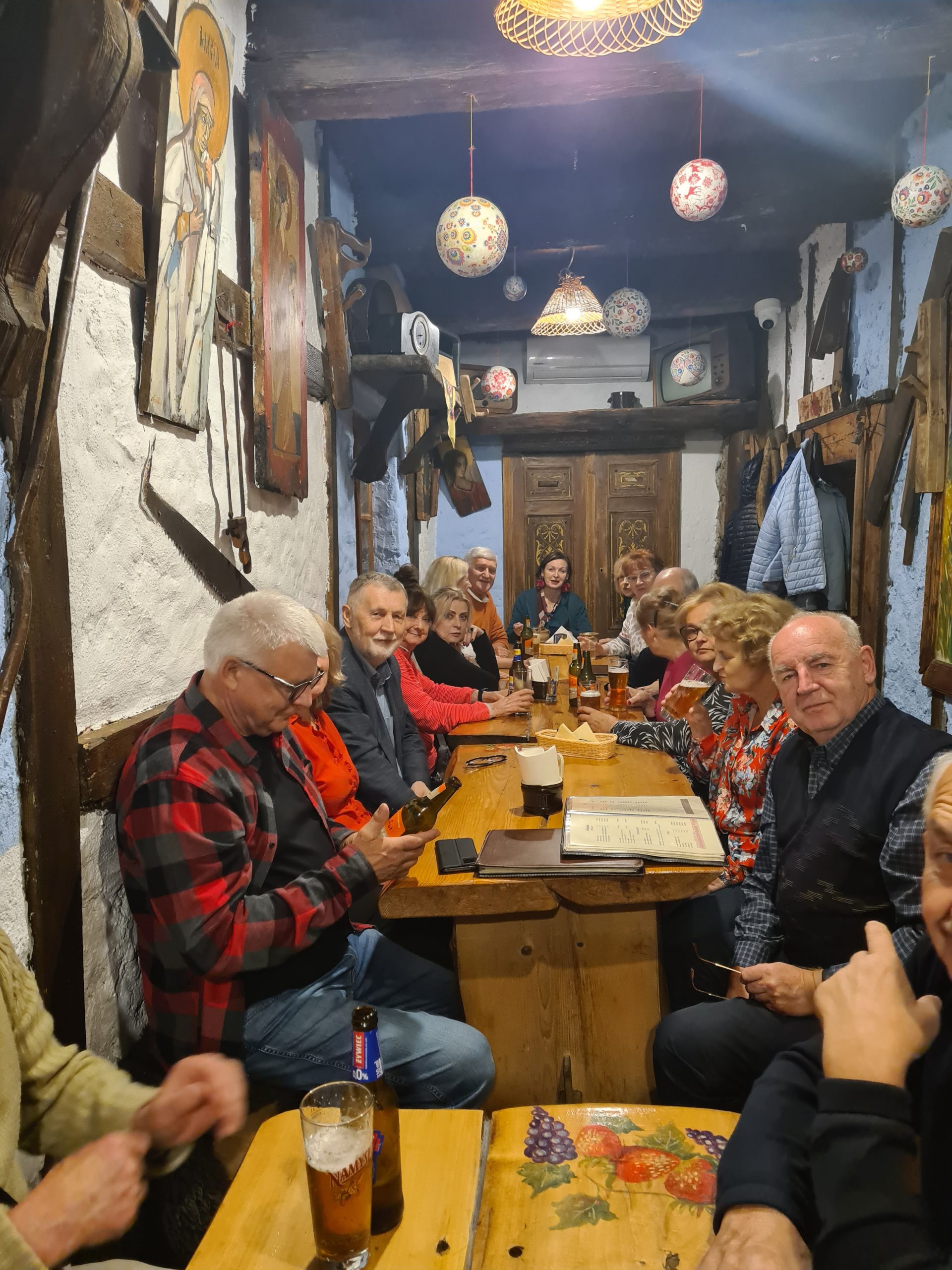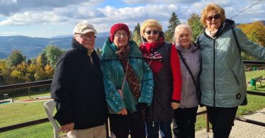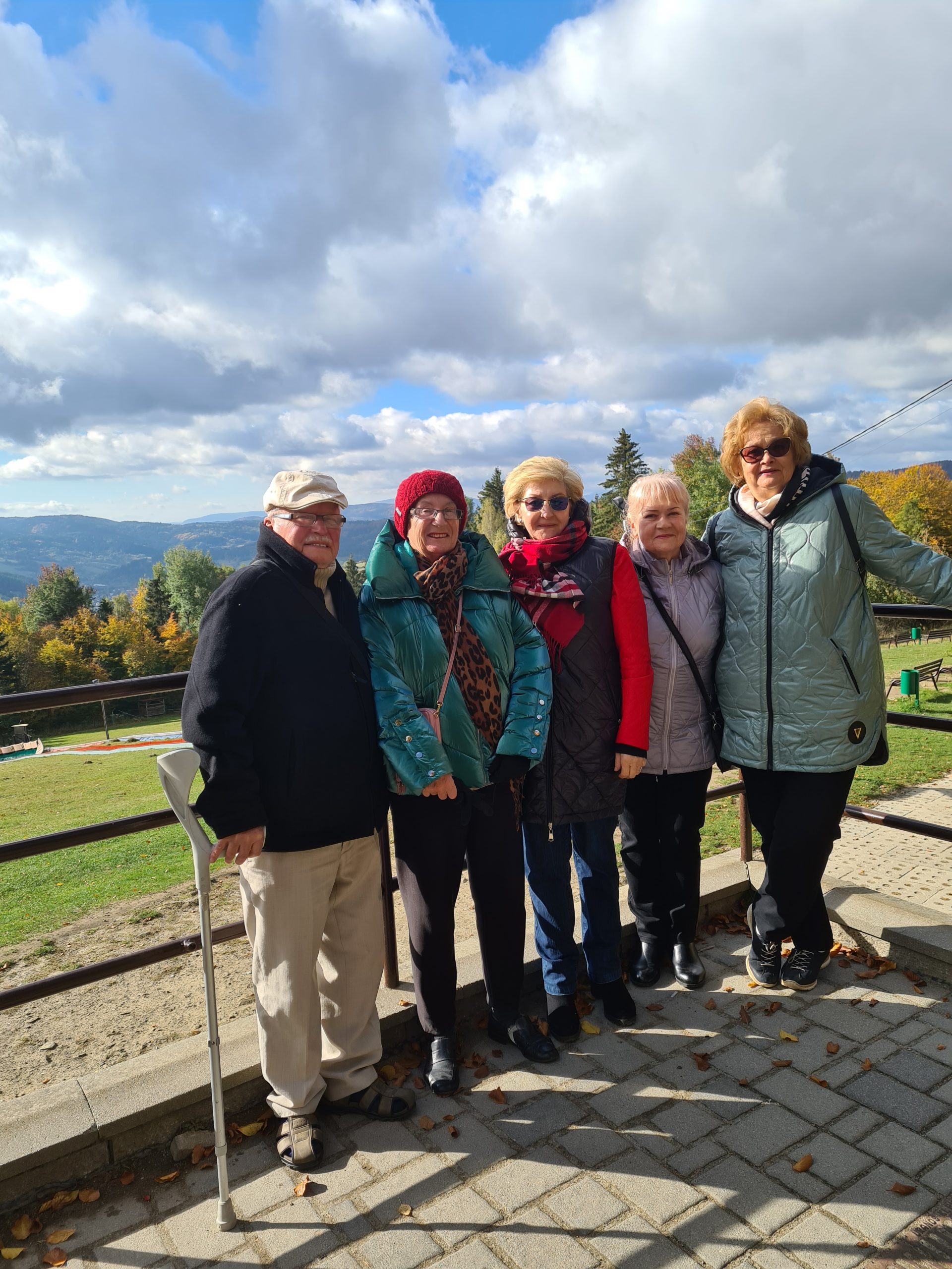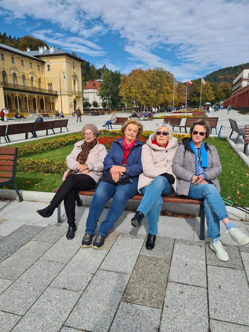 Prawie wszyscy znamy się już od wielu, wielu lat i nie wyobrażamy sobie, aby kolejny raz nie przyjechać tam gdzie będą pozostali. Powitaniom nigdy nie ma końca, a pożegnania są smutne lecz z nadzieją, że na następny rok znowu będziemy razem. Jak to w rodzinie bywa w naszej grupie też ciągle dochodzą nowe osoby i już nas nie opuszczają. W Krynicy Zdroju codziennie po zabiegach i w soboty- niedziele wyjeżdżaliśmy na wycieczki zwiedzając okoliczne tereny, a niektórzy nawet wyruszyli naSłowację i Węgry, spacerowaliśmy, rozmawialiśmy. Był wieczorek taneczny w restauracji, ognisko góralskie, wspólna kawa w kawiarni, a na zakończenie wieczór w karczmie łemkowskiej. Przepiękne widoki z Góry Parkowej, Jaworzyny Krynickiej czy z Wieży Widokowej pozostaną na długo w pamięci. Cały czas korzystaliśmy też z ciepłej,a nawet bardzo ciepłej jak na październik pogody, słońce świeciło, a różne kolory liści na drzewach wyglądały bajecznie. Oj, żal było wyjeżdżać…. Jednak wiosną znowu gdzieś wyjedziemy, a już na pewno spotkamy się na przełomie sierpnia i września w Łebie.
