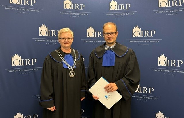 Strona główna Ślubowanie radcowskie 01.07.2024 r. 1 lipca 2024 W dniu 1 lipca 2024 roku ślubowanie radcowskie złożył Pan Marcin Kotowski, ślubowanie odebrała Dziekan OIRP w Olsztynie Katarzyna Skrodzka-Sadowska. FacebookXLinkedIn