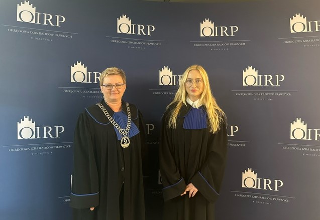 Strona główna Ślubowanie radcowskie 15.04.2024 r. 17 kwietnia 2024 W dniu 15 kwietnia 2024 roku ślubowanie radcowskie złożyła Pani Helena Galińska-Świszcz, ślubowanie odebrała Dziekan OIRP w Olsztynie Katarzyna Skrodzka-Sadowska. FacebookXLinkedIn
