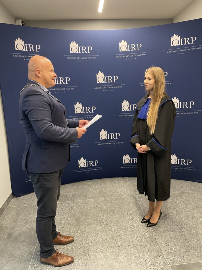 Strona główna Ślubowanie radcowskie 15.10.2024 r. 15 października 2024 W dniu 15 października 2024 roku ślubowanie radcowskie złożyła Pani Aleksandra Potoplak, ślubowanie odebrał Dziekan OIRP w Olsztynie Michał Korwek. . FacebookXLinkedIn