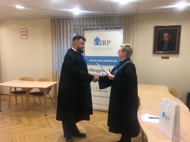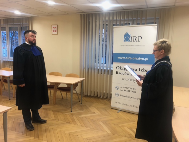 Ogłoszenia • Strona główna Ślubowanie radcowskie 4 stycznia 2022 W dniu 3 stycznia 2022 roku ślubowanie radcowskie złożył Pan Jakub Doliński, ślubowanie odebrała Dziekan OIRP w Olsztynie Katarzyna Skrodzka-Sadowska. FacebookXLinkedIn