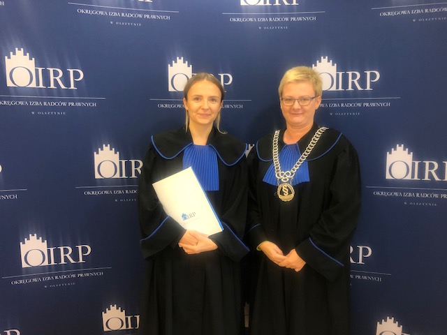 W dniu 7 października 2022 roku ślubowanie radcowskie złożył Pani Milena Bernacka-Stachniałek, ślubowanie odebrała Dziekan OIRP w Olsztynie Katarzyna Skrodzka-Sadowska.