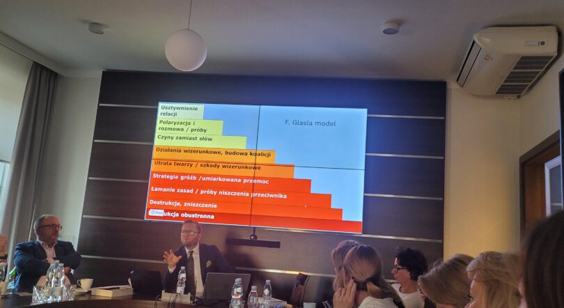 Warsztaty poprowadził dr Tomasz Antoszek z Poznania. Ich głównym motywem były elementy przewagi mediacji nad negocjacjami i innymi polubownymi sposobami rozwiązywanie sporów przez same strony. Ciekawym motywem było wykorzystanie do dyskusji kart popularnej gry Dixit.