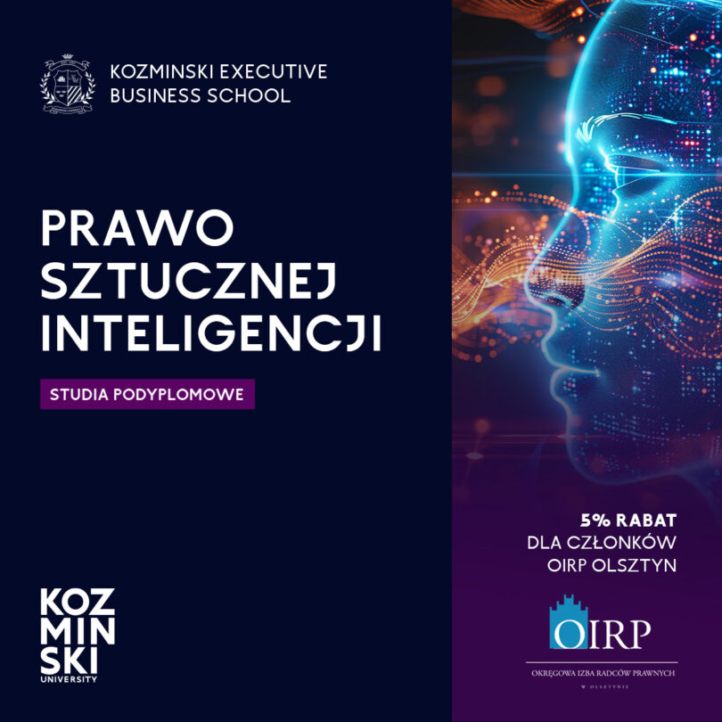 Więcej informacji oraz formularz zapisów znajdą Państwo na stronie: https://www.kozminski.edu.pl/pl/oferta-edukacyjna/studia-podyplomowe/prawo-sztucznej-inteligencji
